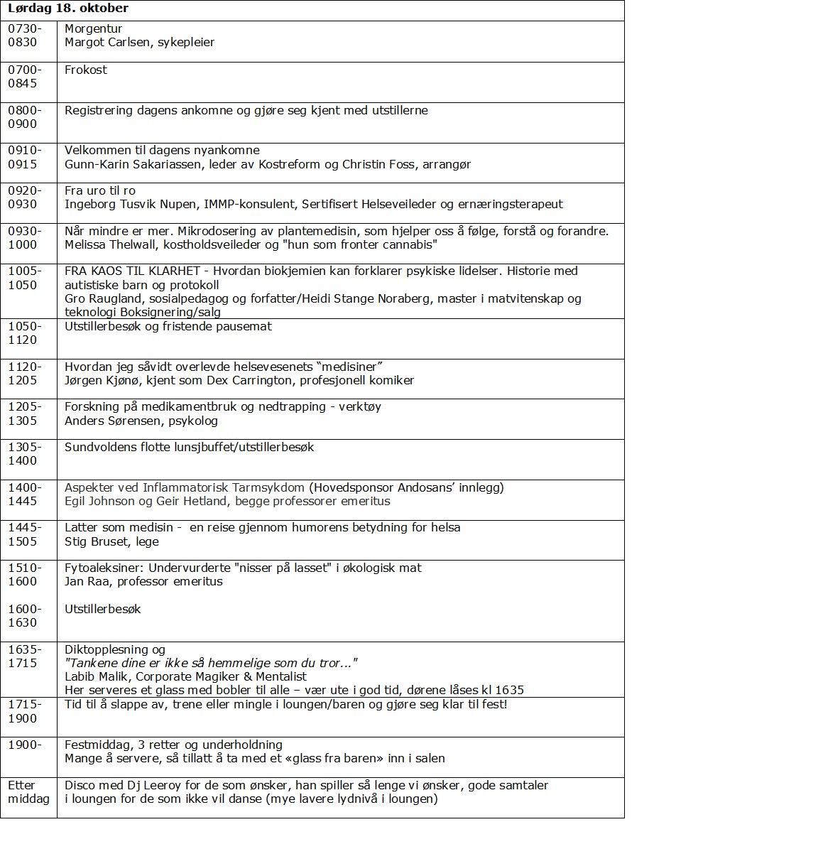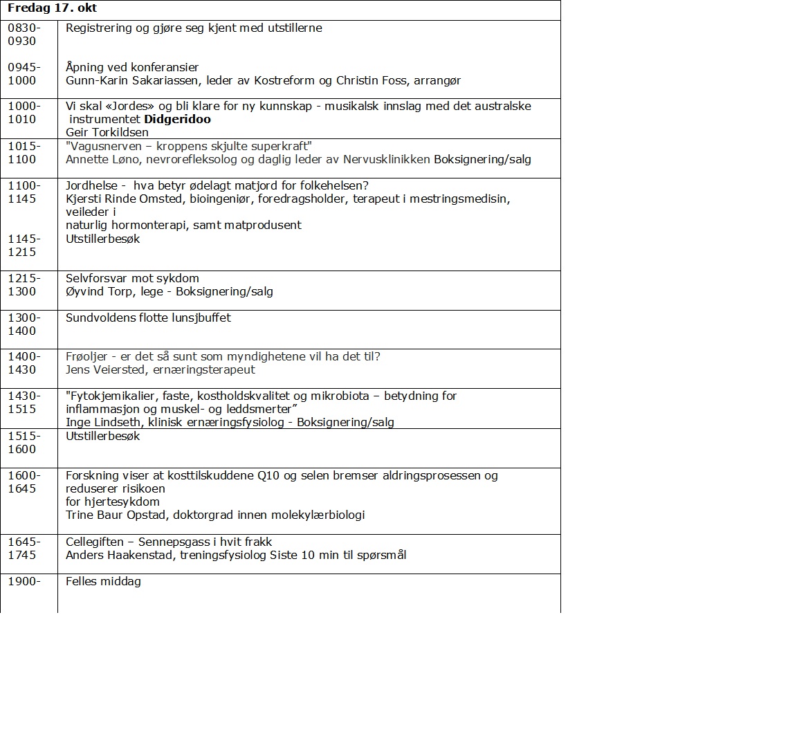 - For et inspirerende og givende seminar dette er! Høyt faglig innhold og massevis av spennende foredrag med aktuelle temaer og gode foredragsholdere innen naturmedisin og naturlig helse. Nydelig mat, salgsstander med gode tilbud og en herlig atmosfære. Så fantastisk å få tilbringe en hel dag sammen med andre som har de samme interesser samtidig som vi lærer masse nytt. Neste gang blir det hele helgen på oss. Hilsen Inger-Lise og Tina, storfornøyde Sunkostdrivere.